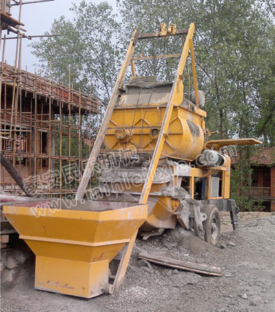 3.攪拌好的混凝土自動反轉(zhuǎn)出料到泵送料斗沿管道輸送到地點。